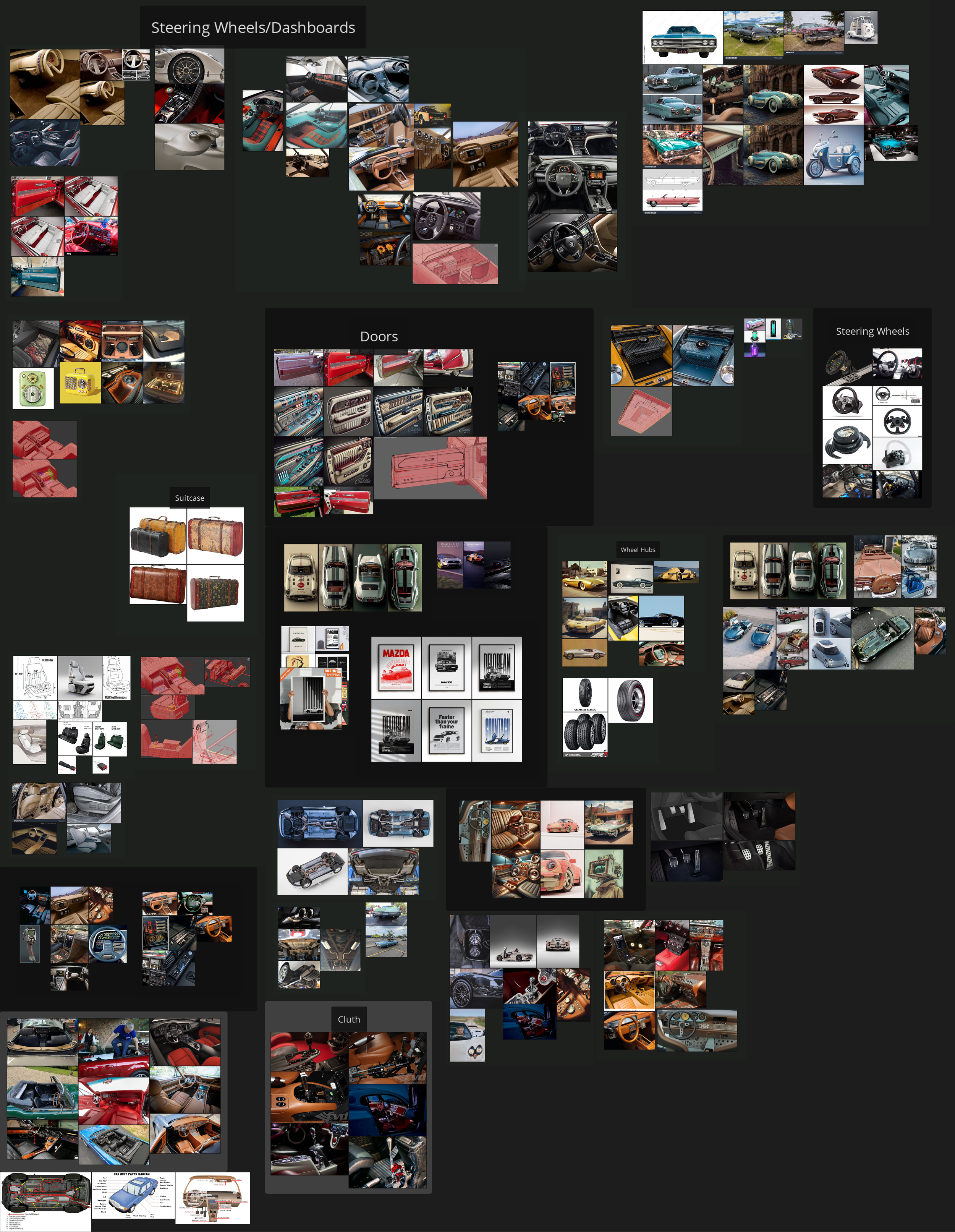 In starting the project and at multiple points throughout the project, I put time aside from being in 3D programs and instead took the time to scroll through a plethora of car concepts, Design styles and interiors. I would keep all those in Pureref to have them consolidated in one place.