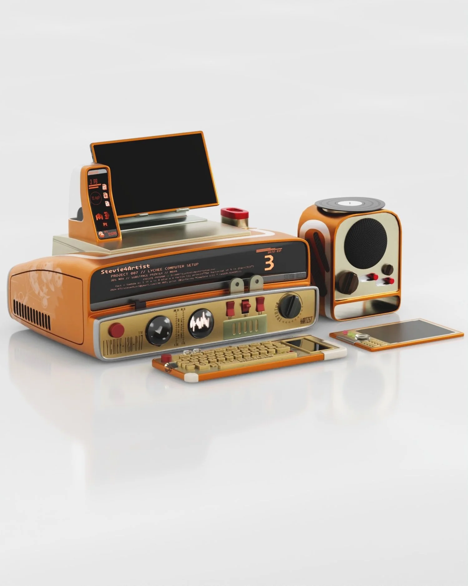 In creating this 3D model, I see it has a beautiful Retro-Futuristic aesthetic, suitable for posters and computer wallpapers. At a resolution of ”5120 x 2160 (21:9),” they are natively fit for Ultra-wide monitors, though they are easily accommodating for “1920 x 1080 (16:9).”
